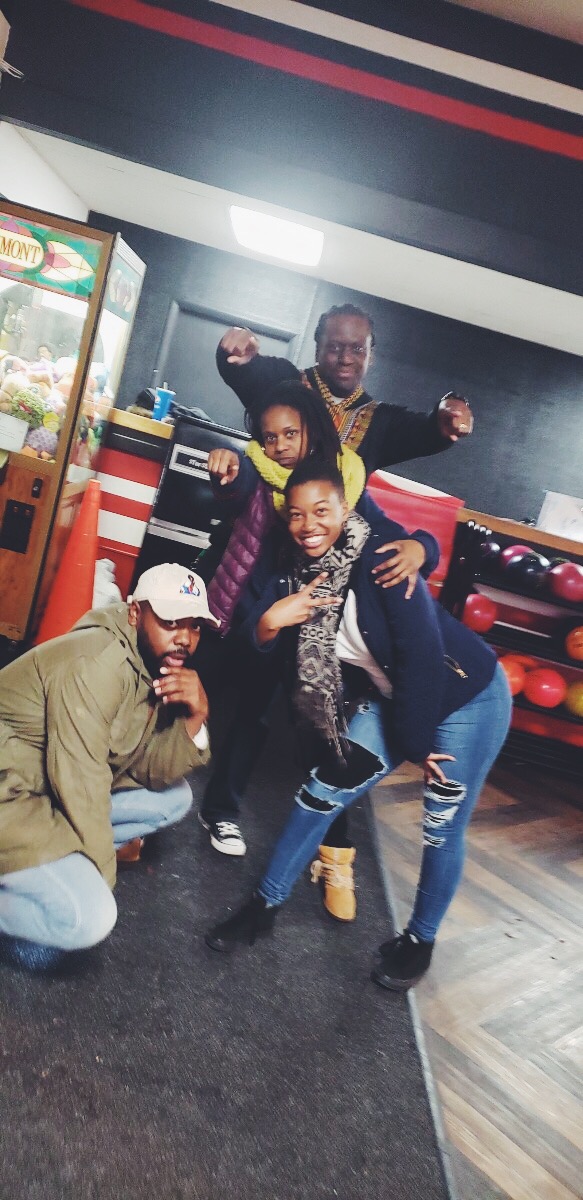Byron egging me on, during our Sankofa holiday party in 2015.